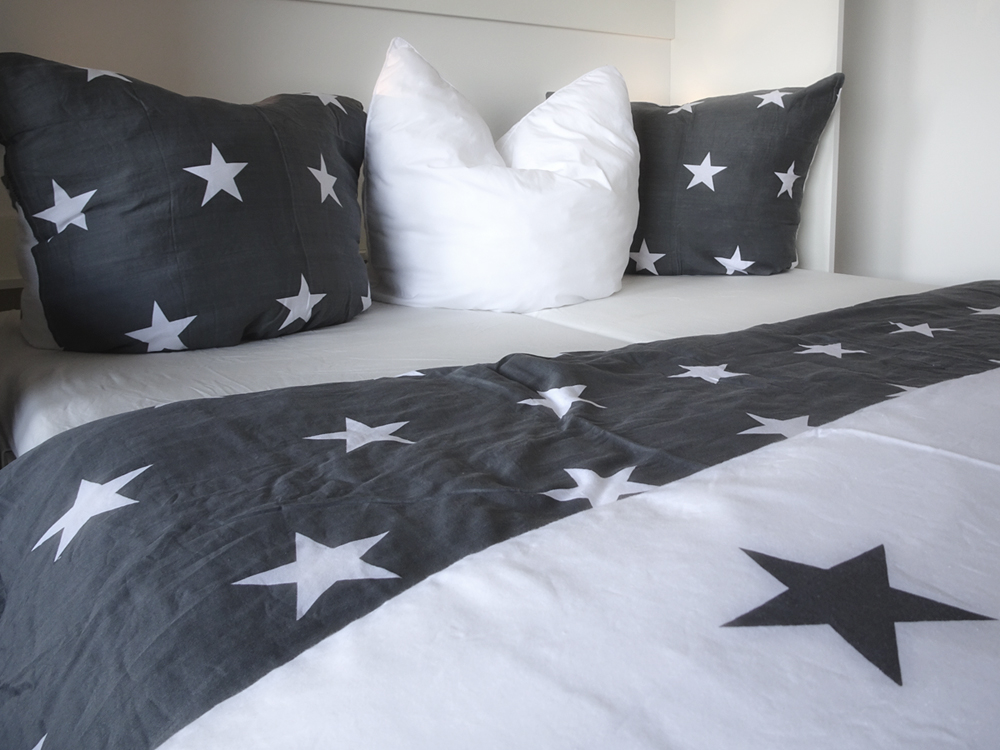 Zusätzlich steht im Schlafzimmer ein Etagenbett, dass zwei Schlafmöglichkeiten auch für Erwachsene zur Verfügung stellt.
